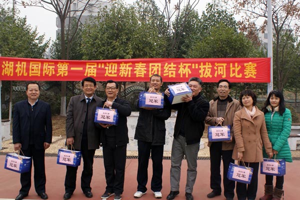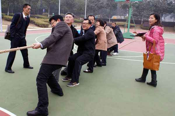 2014年元月26日上午10點(diǎn),微風(fēng)拂面,湖機(jī)國際第一屆“迎新春、團(tuán)結(jié)杯”拔河比賽在比賽的號令中開始。公司技術(shù)管理團(tuán)隊(duì)成員熱情高漲,在震天響的加油助威聲中,高管隊(duì)勝配套隊(duì),鋸床隊(duì)勝職能隊(duì)。稍作休息后,最讓大家期待的決賽終于吹響了號角,高管隊(duì)VS鋸床隊(duì),大家的加油助威聲更響亮了,雙方隊(duì)員拼了命地使勁,各個漲紅了臉,最終高管隊(duì)2:0戰(zhàn)勝鋸床隊(duì)取得了本次拔河比賽的冠軍。